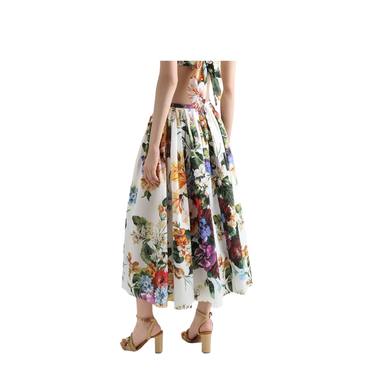 Indulge in the epitome of luxury with the Floral Print Midi Skirt by the renowned brand Dolce & Gabbana. This exquisite piece is a remarkable blend of timeless elegance and contemporary flair, designed for the discerning fashionista who appreciates the finest craftsmanship. Made from high-quality cotton, the skirt offers a soft touch against the skin while ensuring comfort and breathability throughout the day.